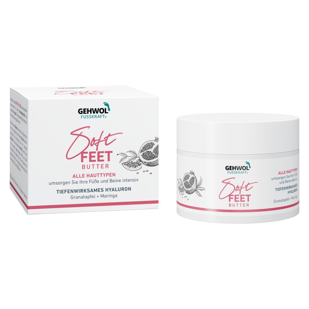 GEHWOL FUSSKRAFT Soft Feet Butter sviestelis su granatų ekstraktu ir aliejine moringa. Intesyviai lepina ir maitina kojų ir pėdų odą.