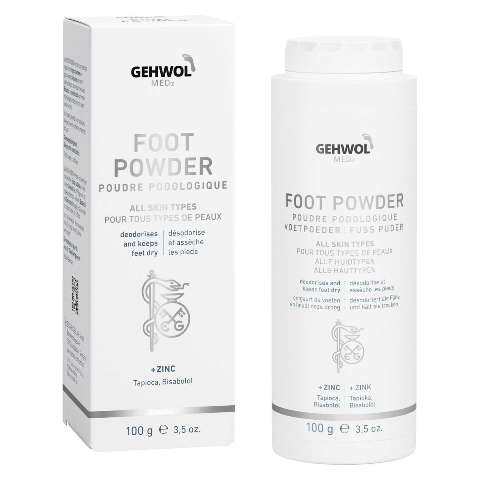 GEHWOL MED® FOOT POWDER PĖDŲ PUDRA dezodoruoja pėdas ir išlaiko jas maloniai sausas.