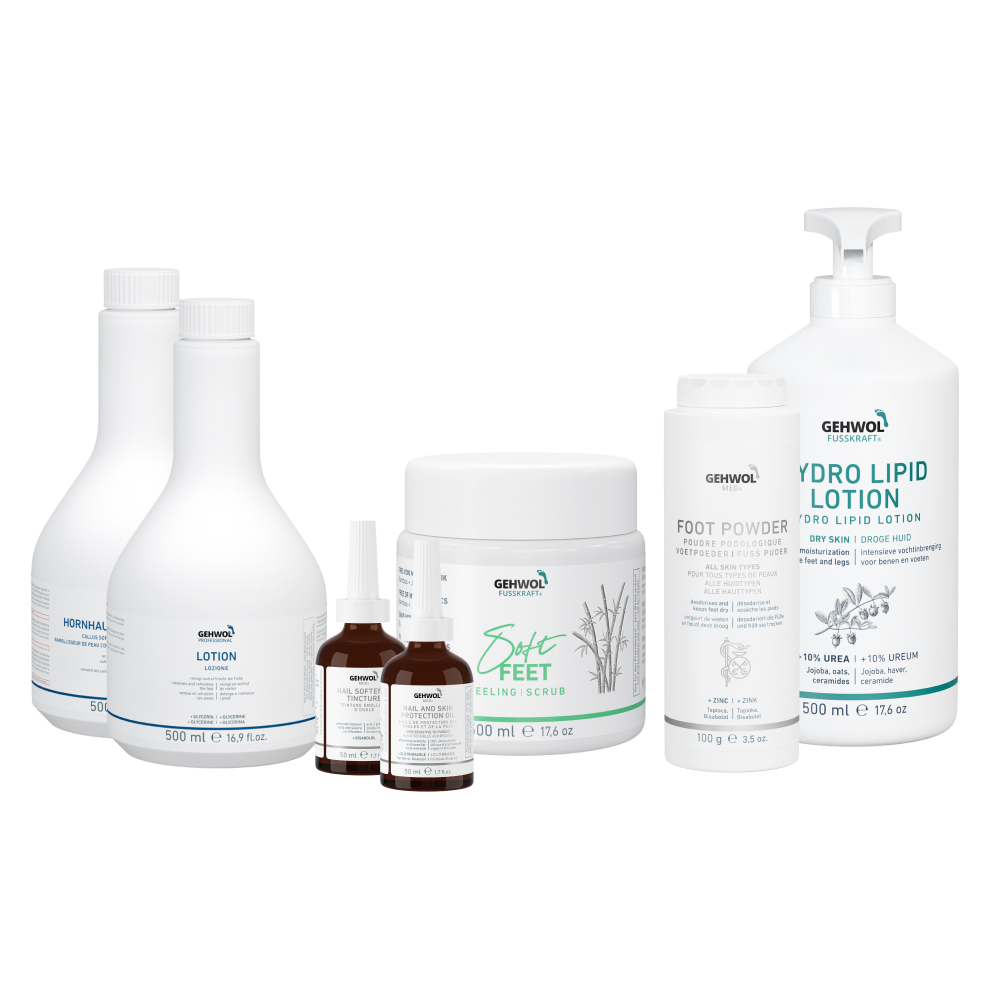 👉 Visos būtinos GEHWOL priemonės vienoje vietoje – nuo paruošimo iki užbaigimo.